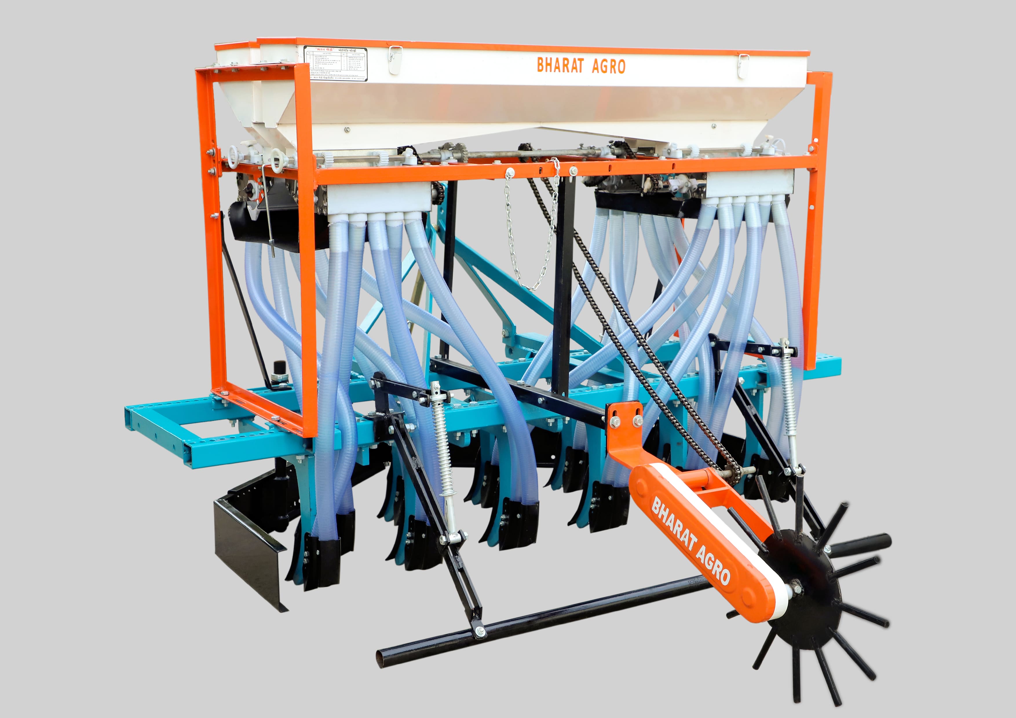 Constructed with a strong and durable frame using high-quality materials, this machine is suitable for continuous operation under various soil and field conditions. Adjustable row spacing and sowing depth allow flexibility for different crops such as wheat, maize, pulses, groundnut, and oilseeds.